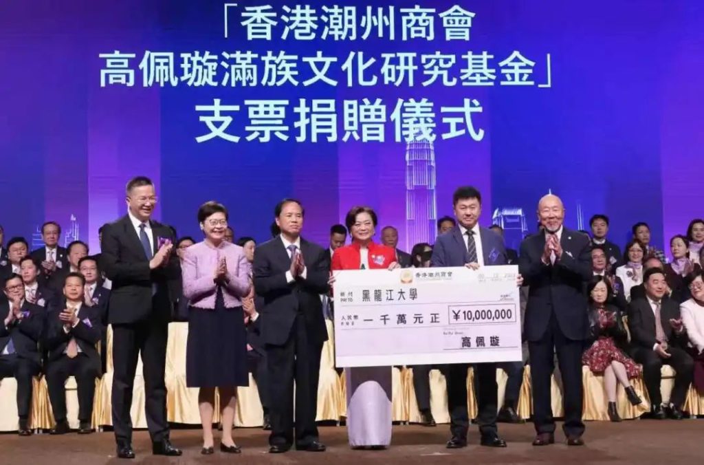 全国政协委员、香港黑龙江社团总会永远荣誉顾问高佩璇捐赠一千万元人民币用于黑龙江大学设立满族文化研究基金