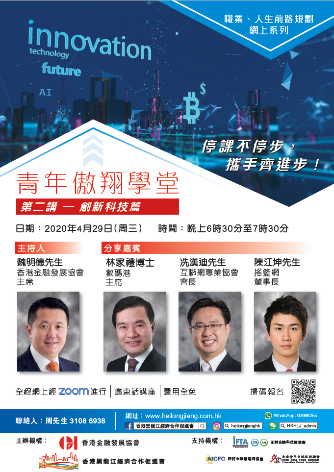 青年傲翔學堂 第二講 — 創新科技篇 將於4月29日(今天)晚上6:30-7:30舉行